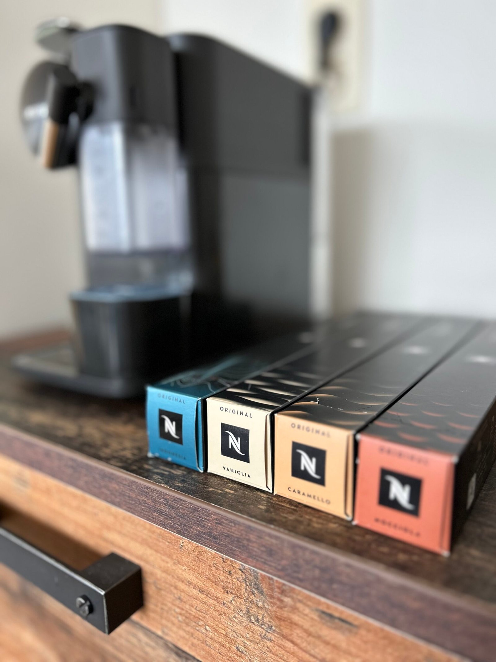 - Mogelijkheid tot gebruik van koffie, thee en water